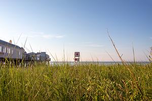 Life guard chair seen through the tall grass (Old Orchard Beach, ME)